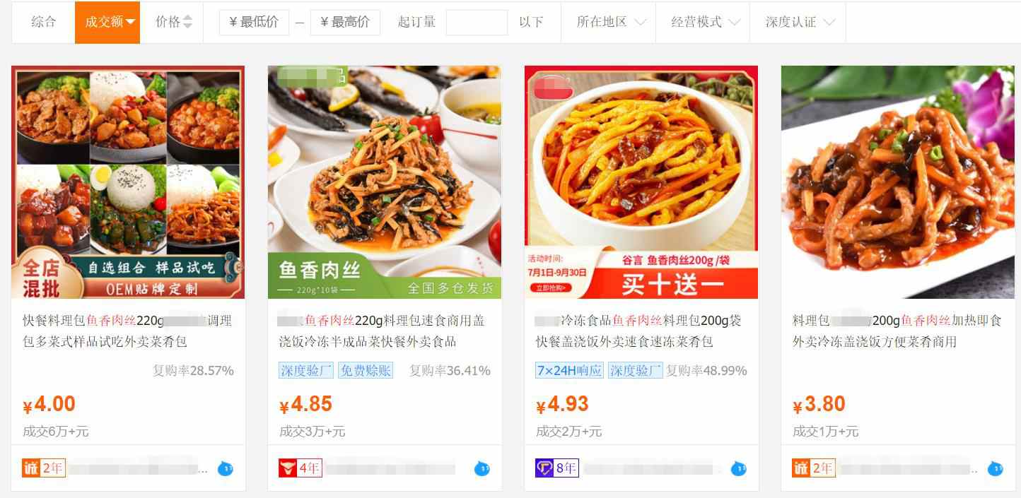 网购平台上销量最好的鱼香肉丝料理包都在5元以下