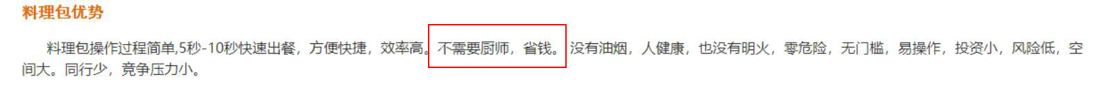 料理包企业同时又宣传自己的产品可以让餐馆不需要厨师
