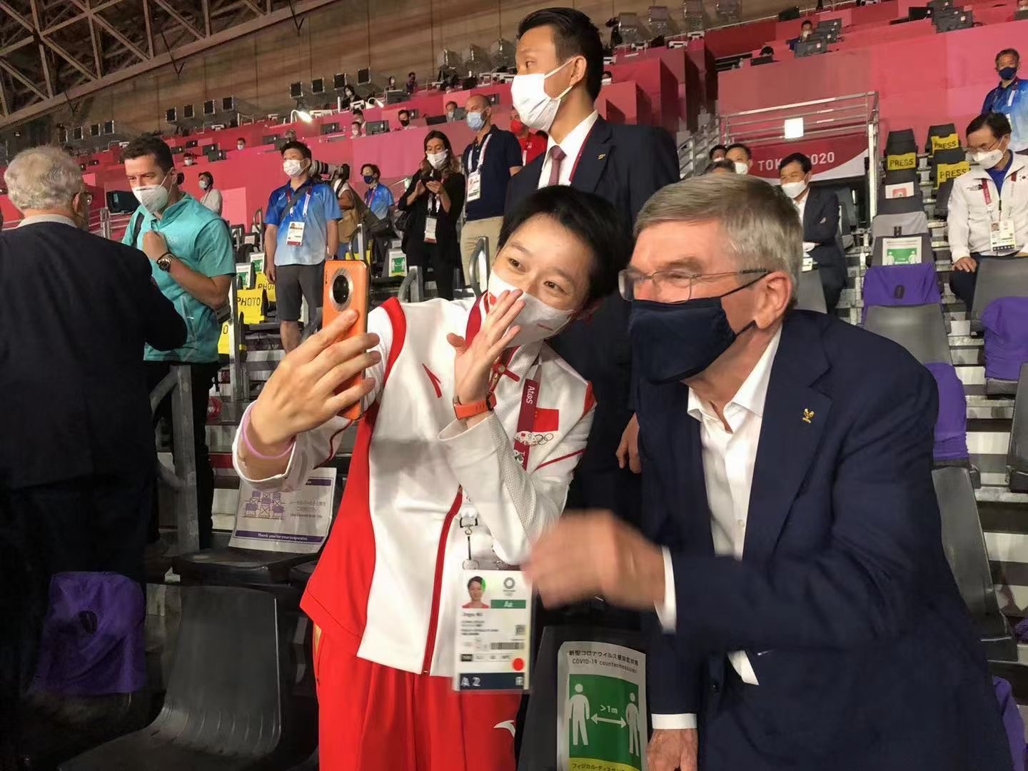 吴静钰赛后与国际奥委会主席巴赫相聚。