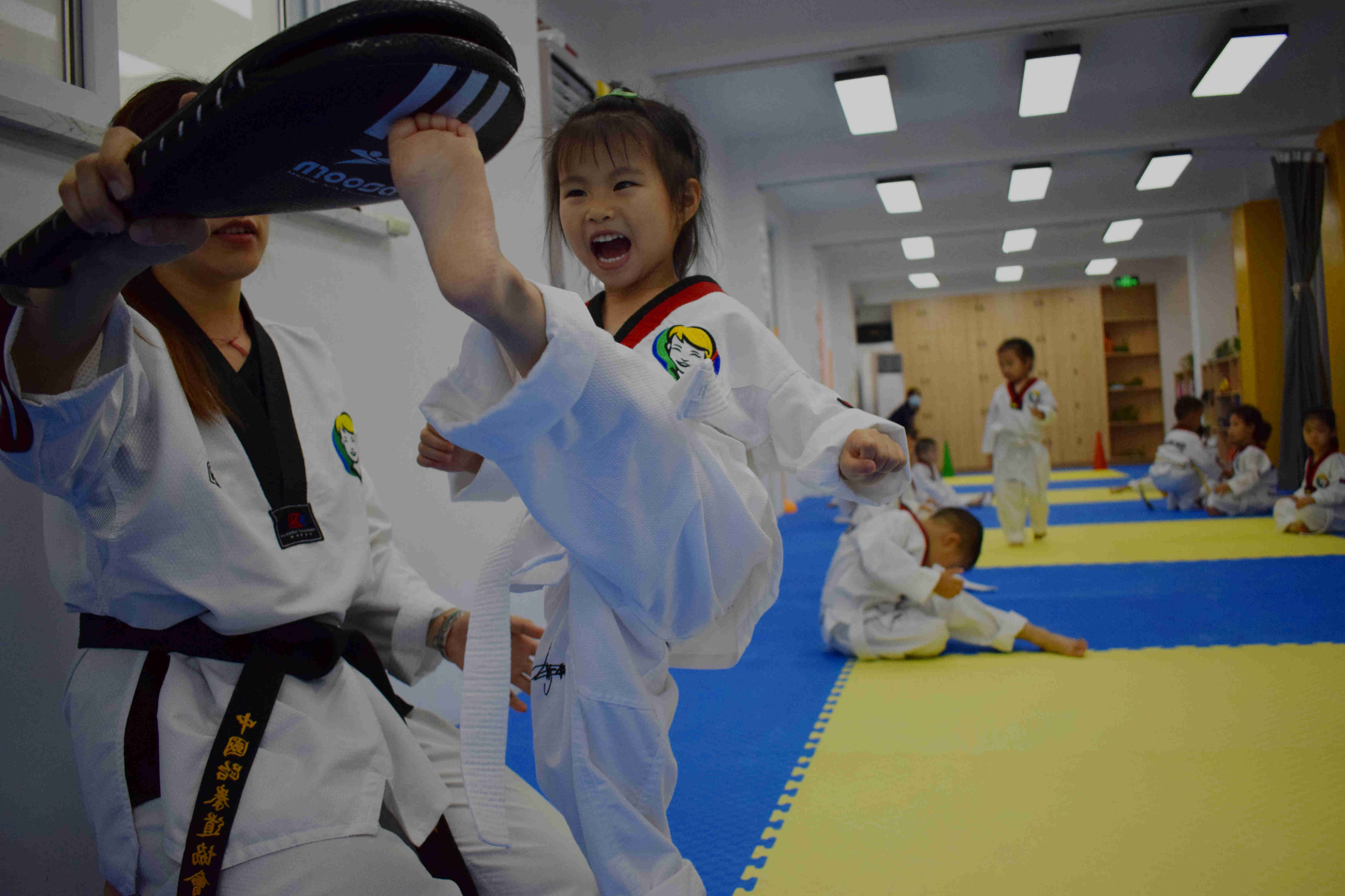 Gloria 练习跆拳道有模有样。