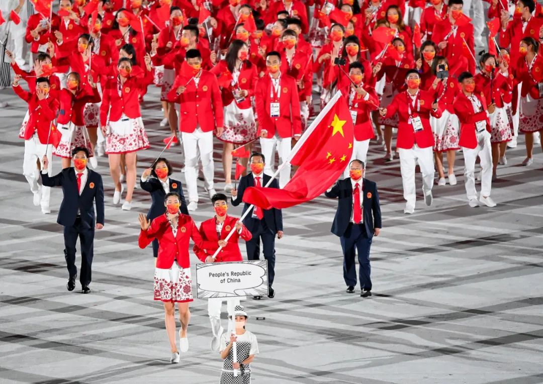 2020东京奥运会开幕式,中国代表团入场。来源:视觉中国