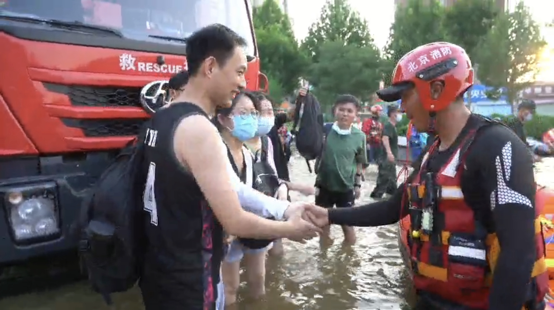为了维护现场转运秩序,解放军列队站成人墙,形成转运干线,确保一进一出两条救援舟艇的通道。北京消防指战员与解放军、地方志愿救援者等救援人员一起,共同开展生命大营救。