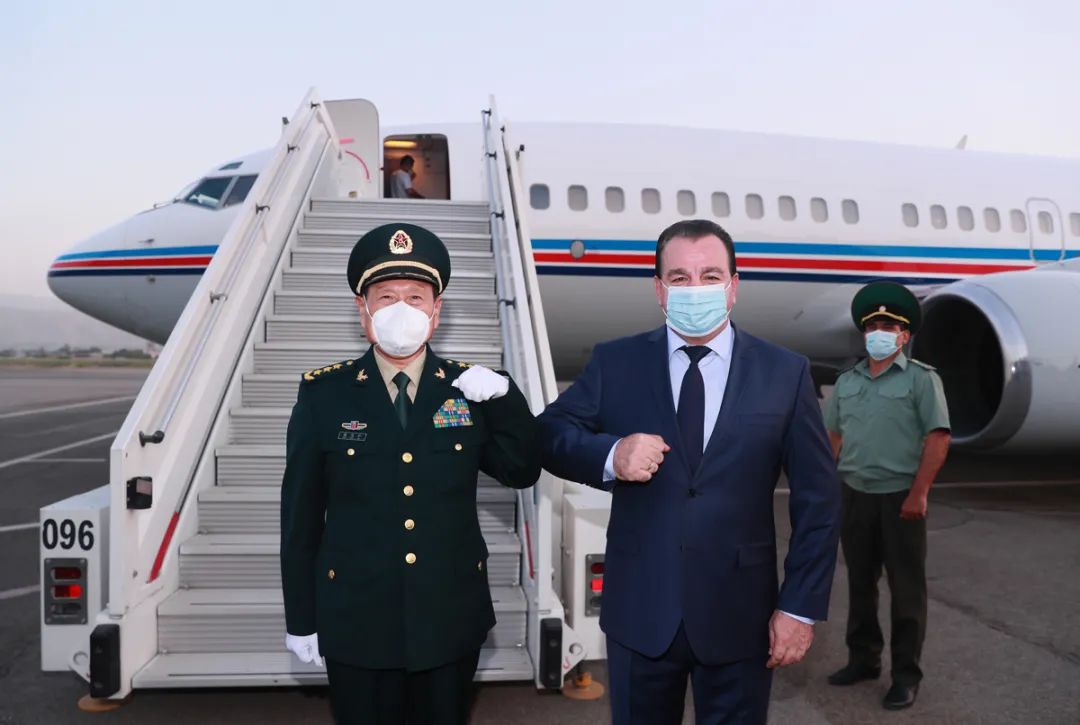 7月26日,塔国防部长米尔佐亲自到机场迎接国务委员兼国防部长魏凤和。李晓伟 摄