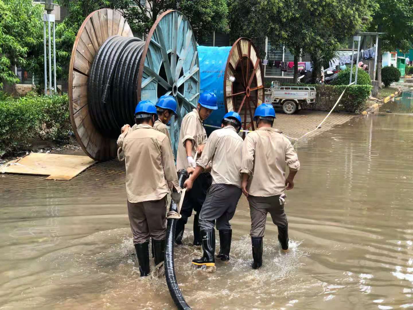 现场,发电车应急供电和现场抢修“双模式”同步进行。抢险队在修复10千伏开关站后,对电气耐压试验合格、具备条件的小区配电室当场送电。针对进水的地下配电室,抢险队紧急采用安装箱式变电站、敷设低压电缆等临时措施,确保尽快恢复供电。