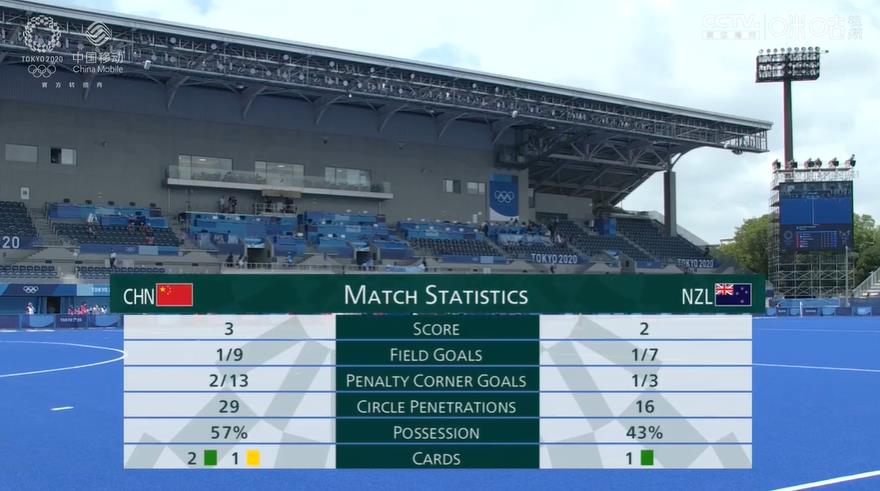 最后一场对阵新西兰队的比赛,中国队在技术统计上全面占据上风。视频截图