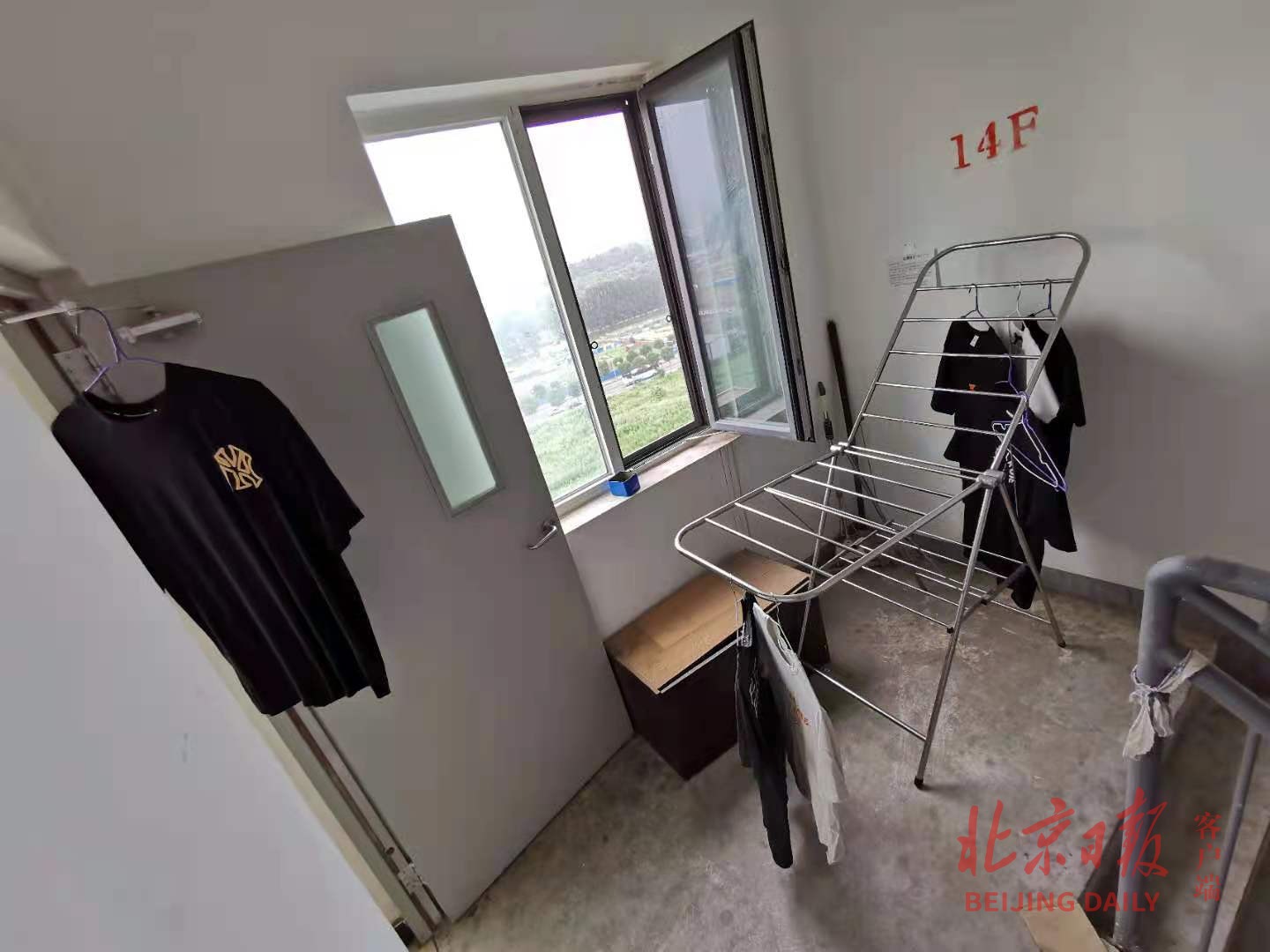 有的楼梯间甚至成了晾晒场。15层楼梯的转弯平台就摆着铁架子,铁架子上搭着破旧地毯、被褥及各式各样的衣服。12层转弯平台的晾衣架上,也同样搭着衣服,还有的衣服被卷起来,塞在楼梯扶手栏杆间,另有一些被随意扔在地上或台阶上。