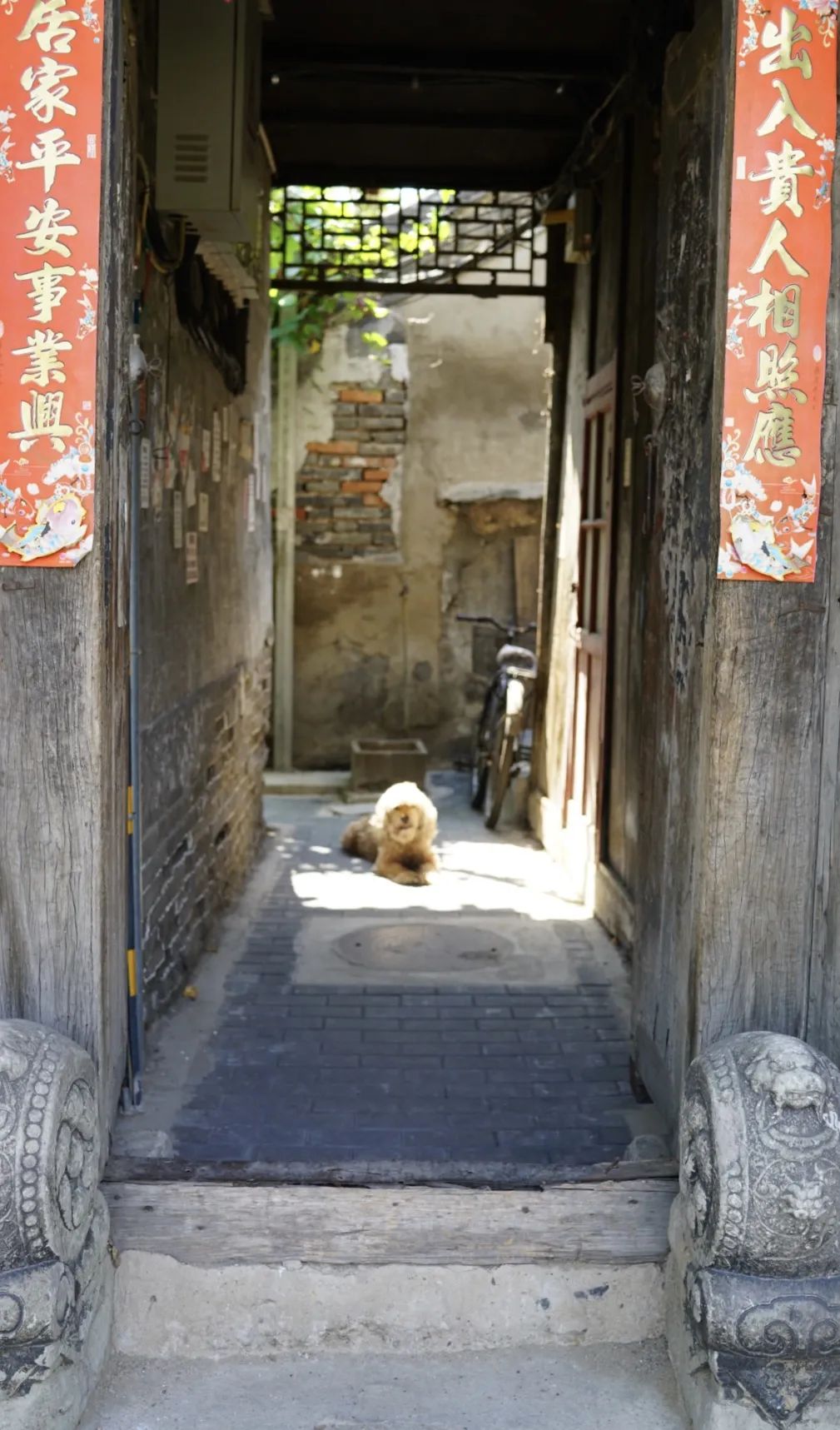 几年前,东城区修整古河道,“三里河”重现京城,附近的胡同也得到了整治,这里的胡同曲折幽深,安静而美丽,路旁的院落有大有小,看门头,大多住在这里的都是平民,几乎看不到那些朱漆的广亮大门和金柱大门。这里更多的是平民级别的蛮子门和如意门,有的干脆就是两扇木门,没有门框屋檐的墙垣门,有些太小的院落干脆就变成了绿地,唯一证明这些院落主人身份的,只有这些院门了。