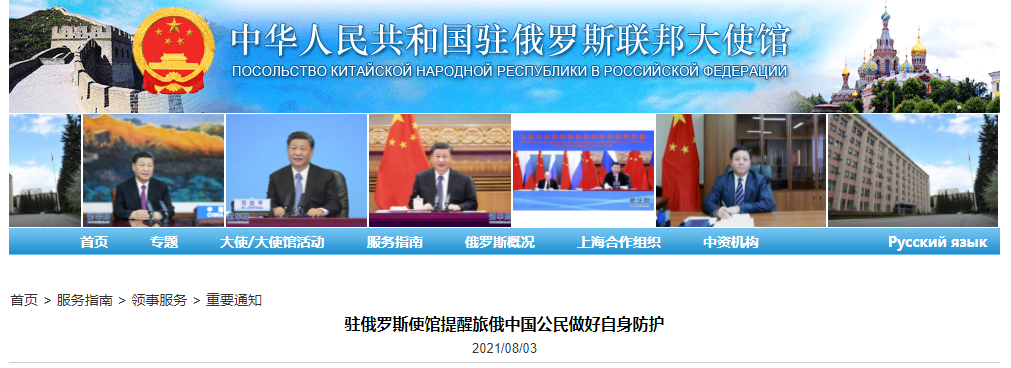 日前,两名中国公民在俄罗斯不幸遇害,驻俄使馆正密切跟踪,协助处理。同时,结合当地疫情,驻俄使馆郑重提醒旅俄中国公民: