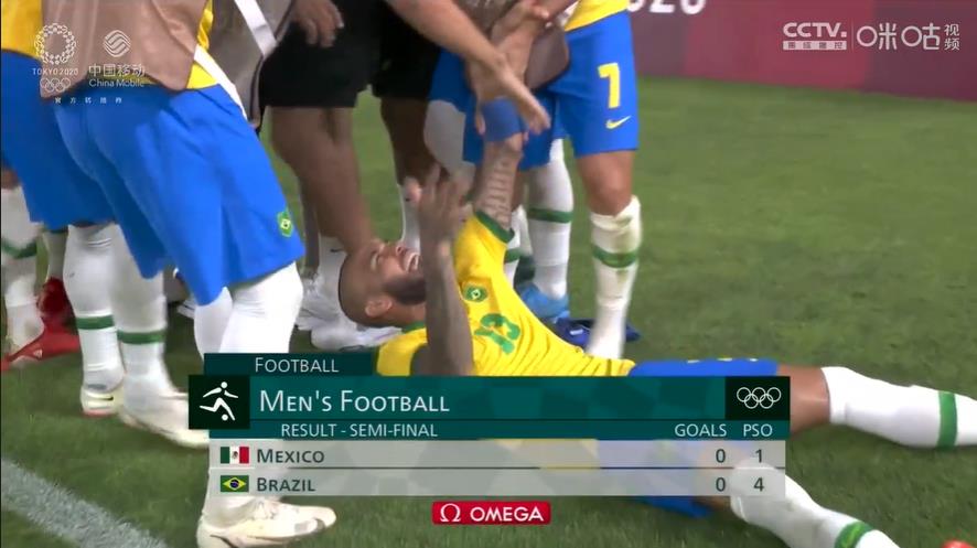 8月3日下午,东京奥运会男足比赛进行了首场半决赛的较量,卫冕冠军巴西队和墨西哥队鏖战120分钟后仍然互交白卷,在点球大战中,巴西队弹无虚发,最终4比1击败对手,晋级决赛。