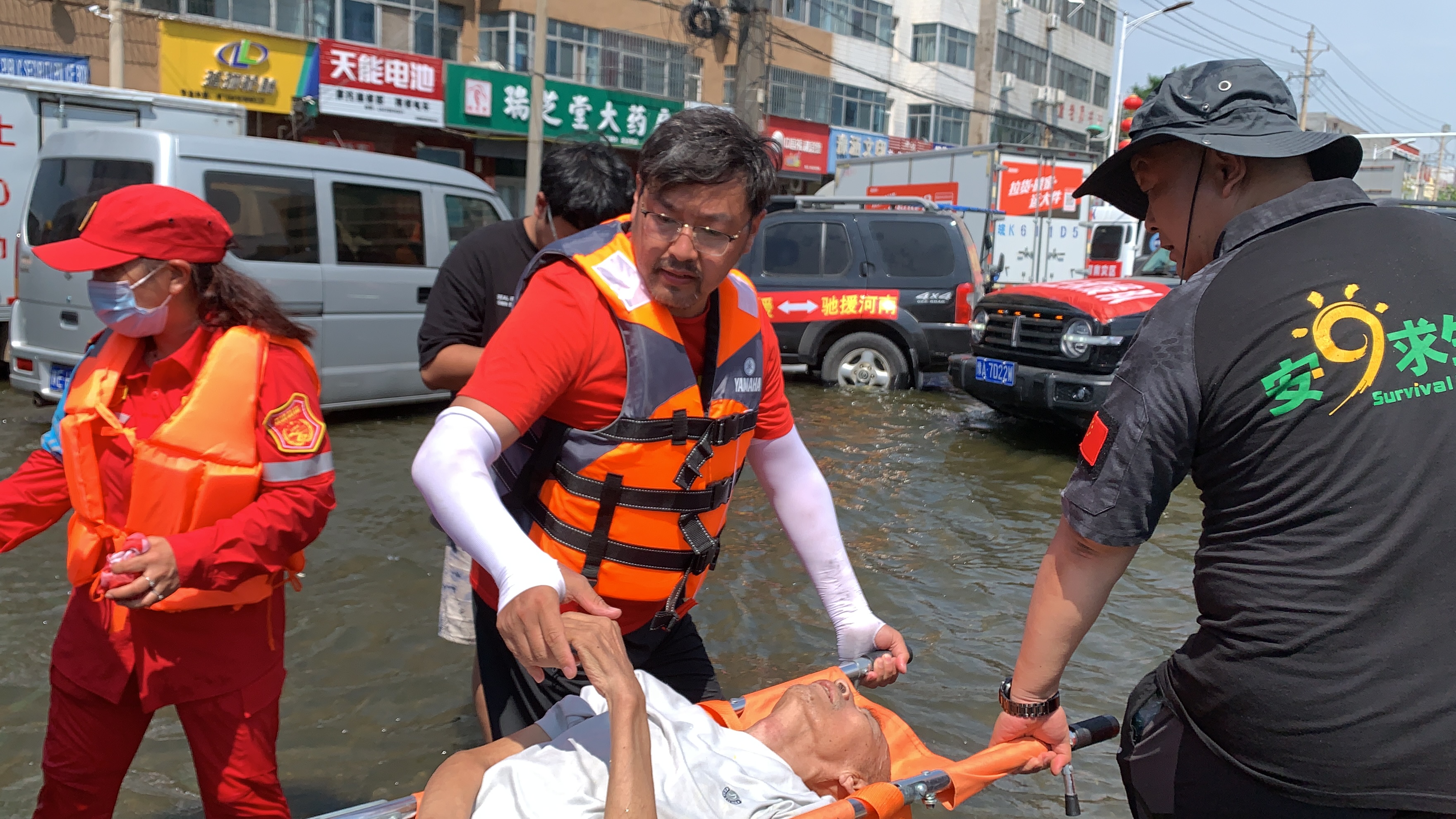7月26日,救援队转战卫辉。由于卫河发生决堤,当地的新乡医学院第一附属医院被洪水包围,3000多名患者和医务人员被困。北京人防浩天救援队与其他救援力量一起,投入到转运被困人员的战斗中。