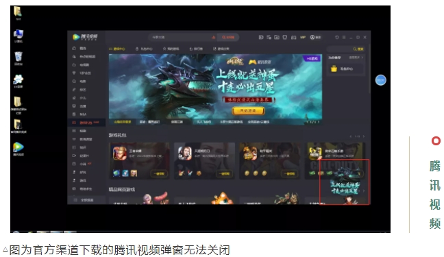调查还发现,腾讯视频、2345看图王、爱奇艺、鲁大师等4款软件的弹窗无法“一键关闭”,没有关闭功能按钮。