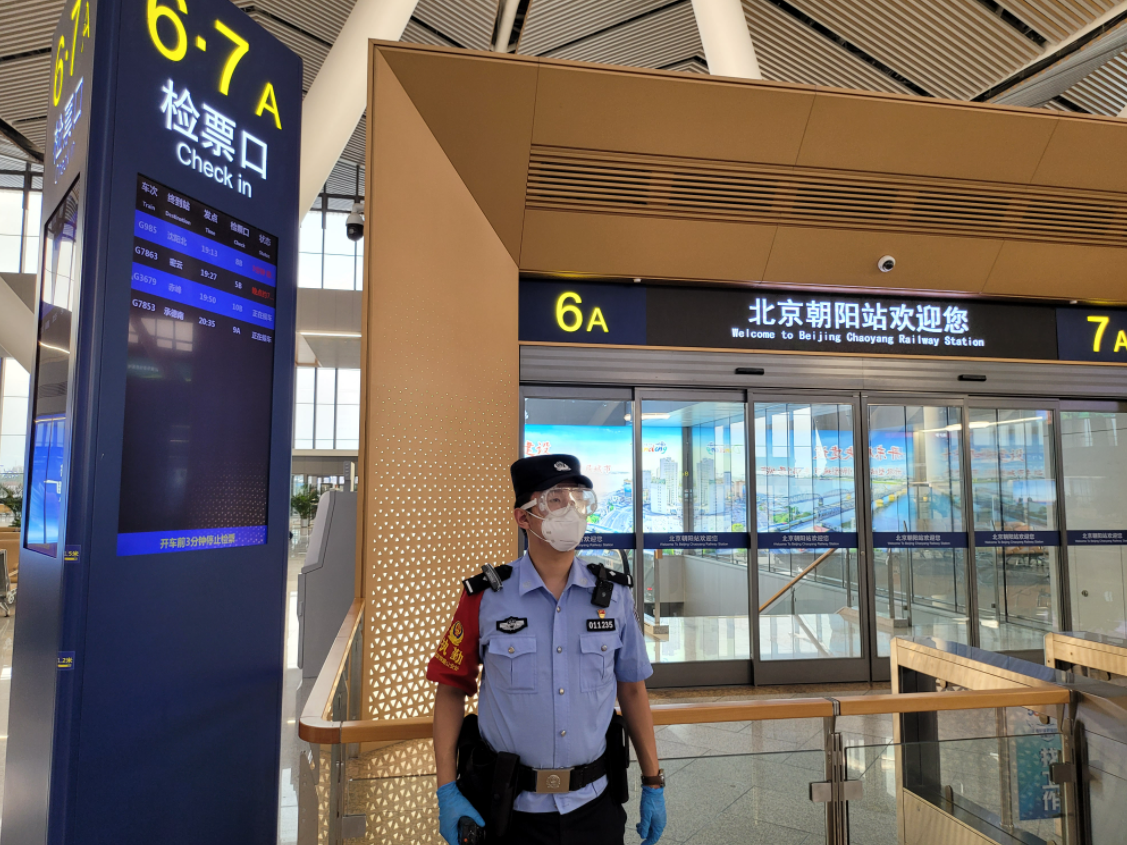 近日,国内出现多点散发疫情,形势严峻,进京管控升级,北京朝阳站迎来了投入使用以来客流量的低谷。旅客减少了,疫情防控力度却加大了。除了日常必备的口罩、酒精喷壶外,执勤民警韩周扬又重新戴上了护目镜和防疫手套,而协助车站的防疫工作也成为站区民警接下来的主要任务之一。