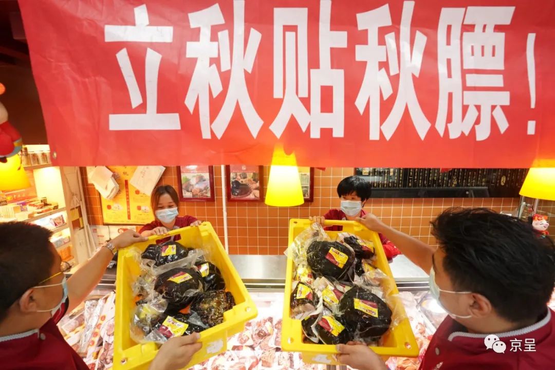 在天福号西直门老店,工作人员正在为立秋上货。
