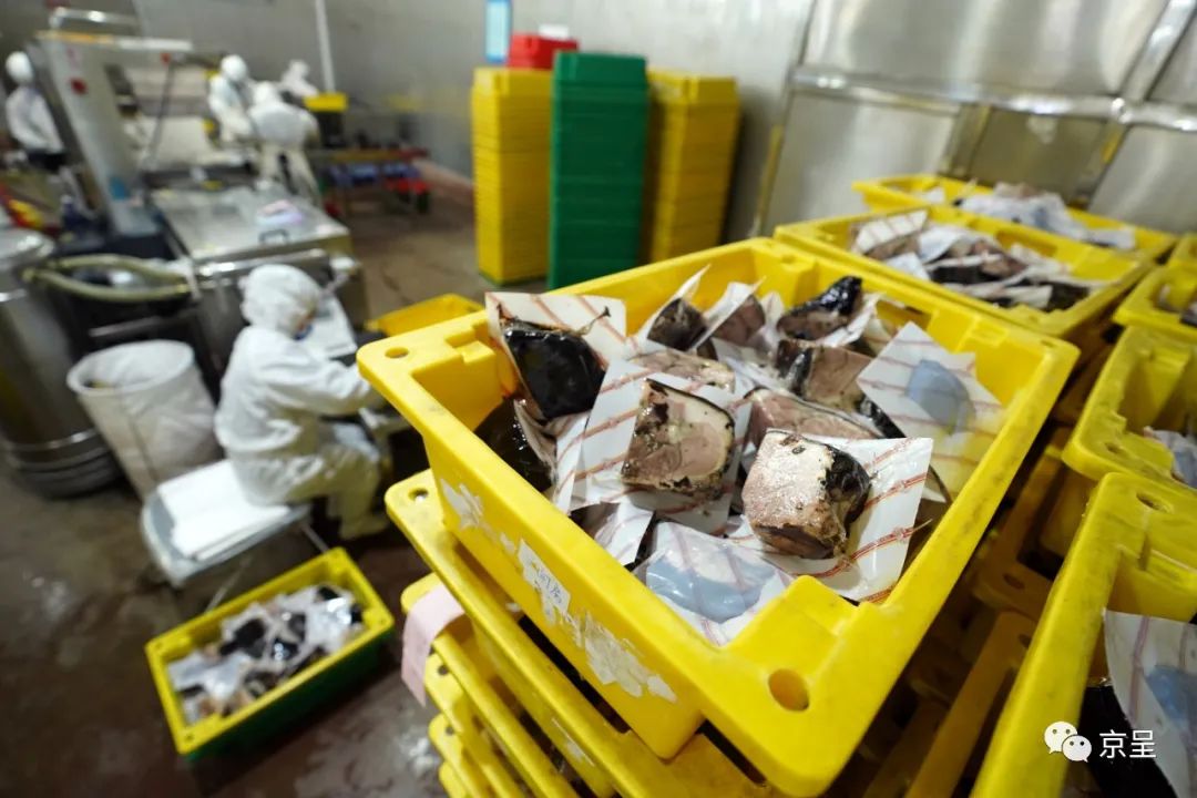 工人师傅进行抽真空包装,方便保存及独立售卖。
