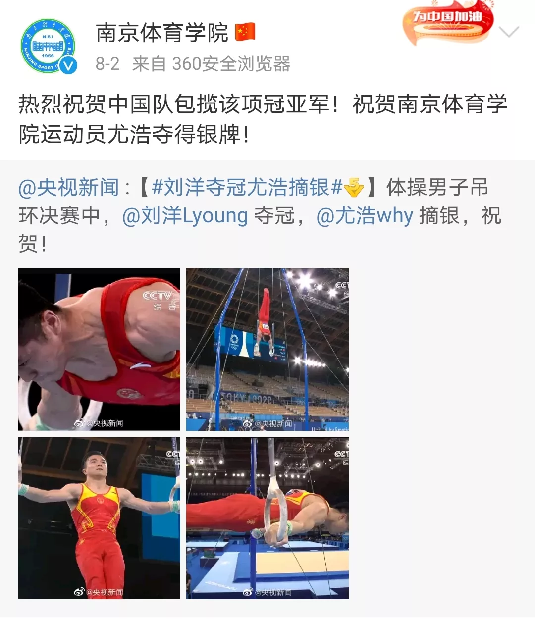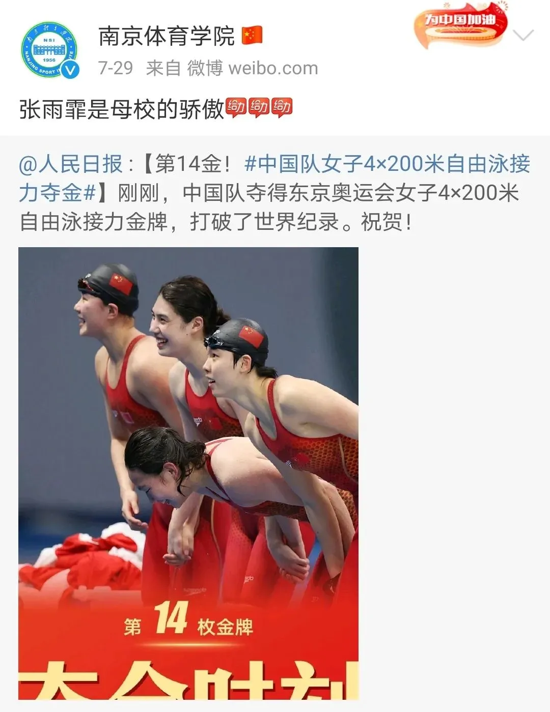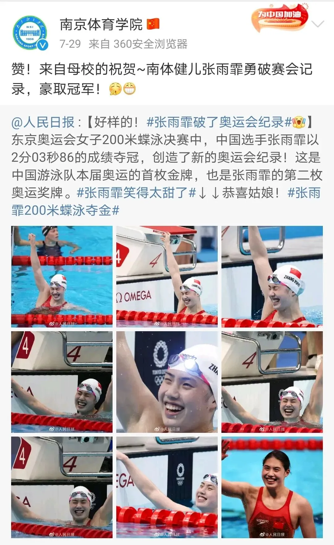 其实,不管来自哪所学校,他们都是令我们骄傲的中国运动员!