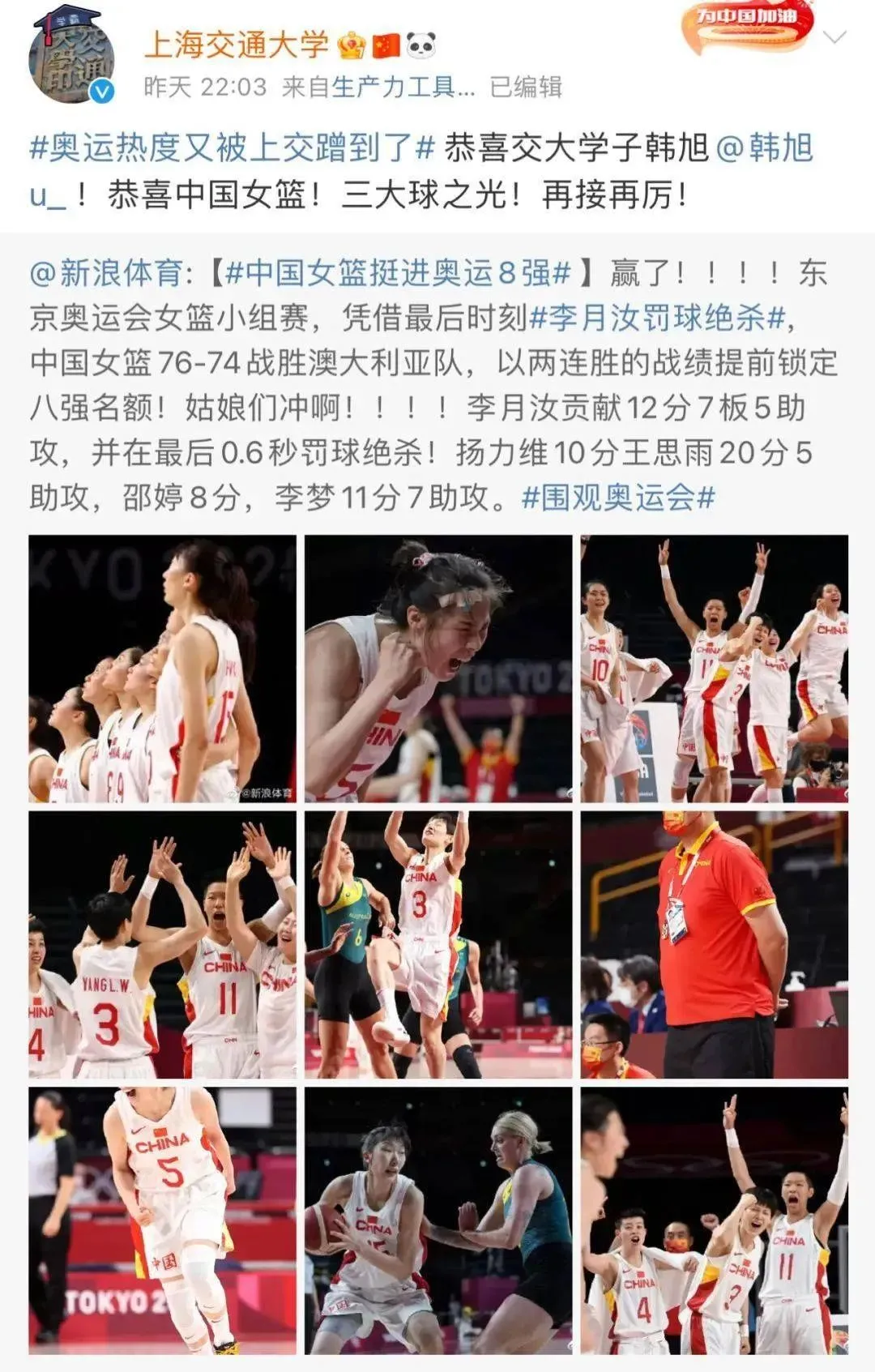 上海交大官方在奥运期间可没闲着