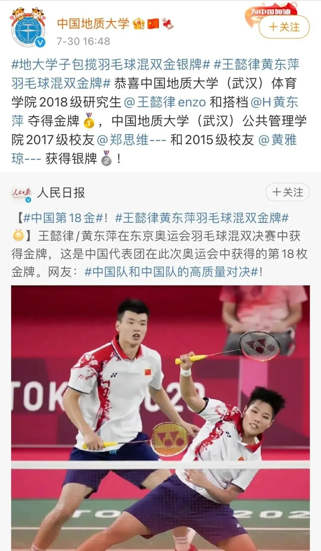 郑思维 、 黄雅琼,羽毛球混合双打银牌