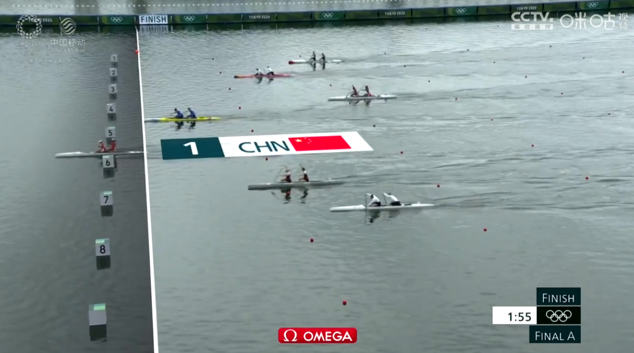 本场决赛,徐诗晓/孙梦雅从一开始就逐渐冒出头,在经过250米计时点的时候已经领先了第二名半个艇身。此后的250米,徐诗晓/孙梦雅没有给对手任何机会,一路领先,最终以领先对手两秒的成绩,毫无悬念夺得金牌!
