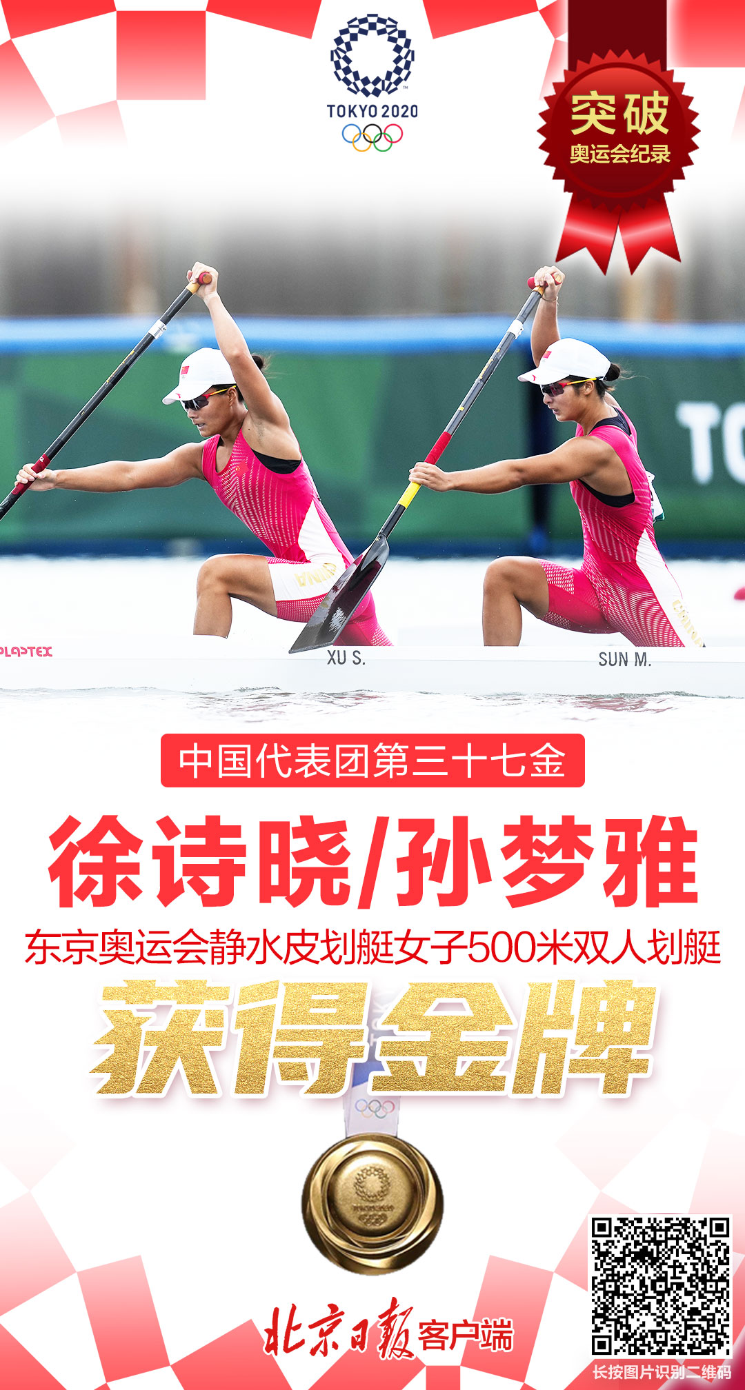 8月7日,2020东京奥运会静水皮划艇女子500米双人划艇决赛,此前以半决赛第一晋级决赛的中国组合徐诗晓/孙梦雅在这场决赛中夺得金牌!这是中国皮划艇队在本届东京奥运会上获得的首枚金牌!