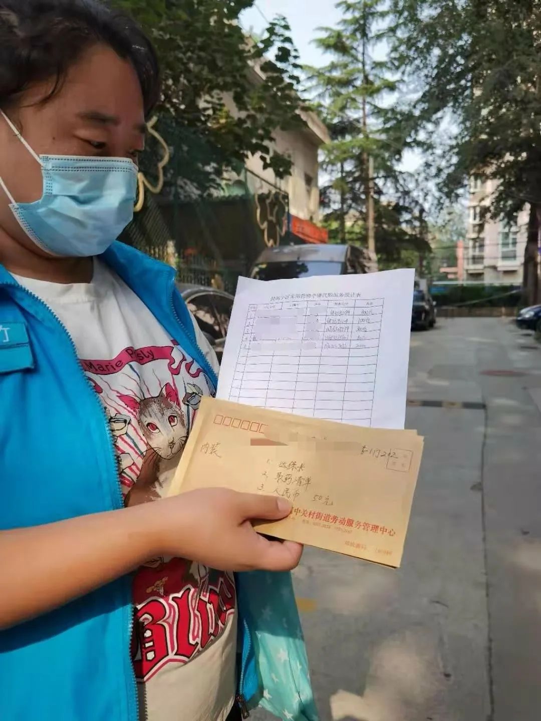 8月6日上午,国兴家园76岁的李老先生发现,自己治疗静脉血栓的药没了,但是取药必须去北京大学人民医院。社区干部得知后,按照流程,把李老先生的社保卡、药品清单等消杀后,交给了封控区外的医疗保障组。由保障组志愿者田磊“接单”,立刻前往人民医院专人专办。