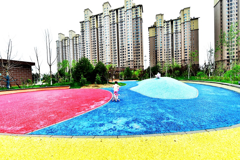 后北营小区的广场、绿地、花园均采用海绵城市建设设施。如今,海绵城市建设工作已在城市副中心全域范围推广。(资料图)记者唐建/摄