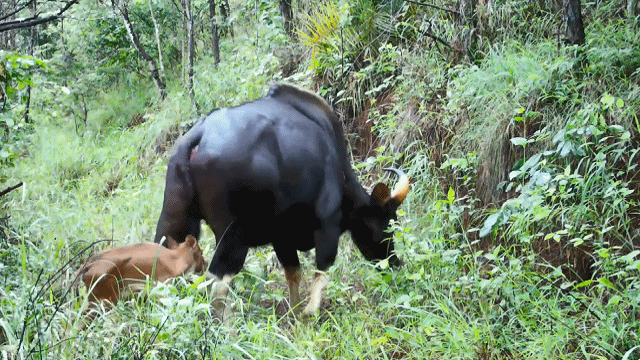 近日,位于云南省普洱市境内的云南糯扎渡省级自然保护区管护局工作人员整理安放在野外的红外相机时,发现红外相机拍到国家一级保护动物亚洲野牛幼崽的珍贵画面,这也是迄今为止国内第一次拍到这一珍稀物种幼崽。