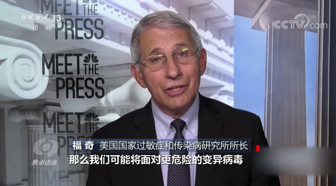 美国国家过敏症和传染病研究所所长 福奇:如果给病毒继续变异的机会,我们可能将面对更危险的变异病毒,这不仅影响未接种疫苗的人群,也将影响已接种者。