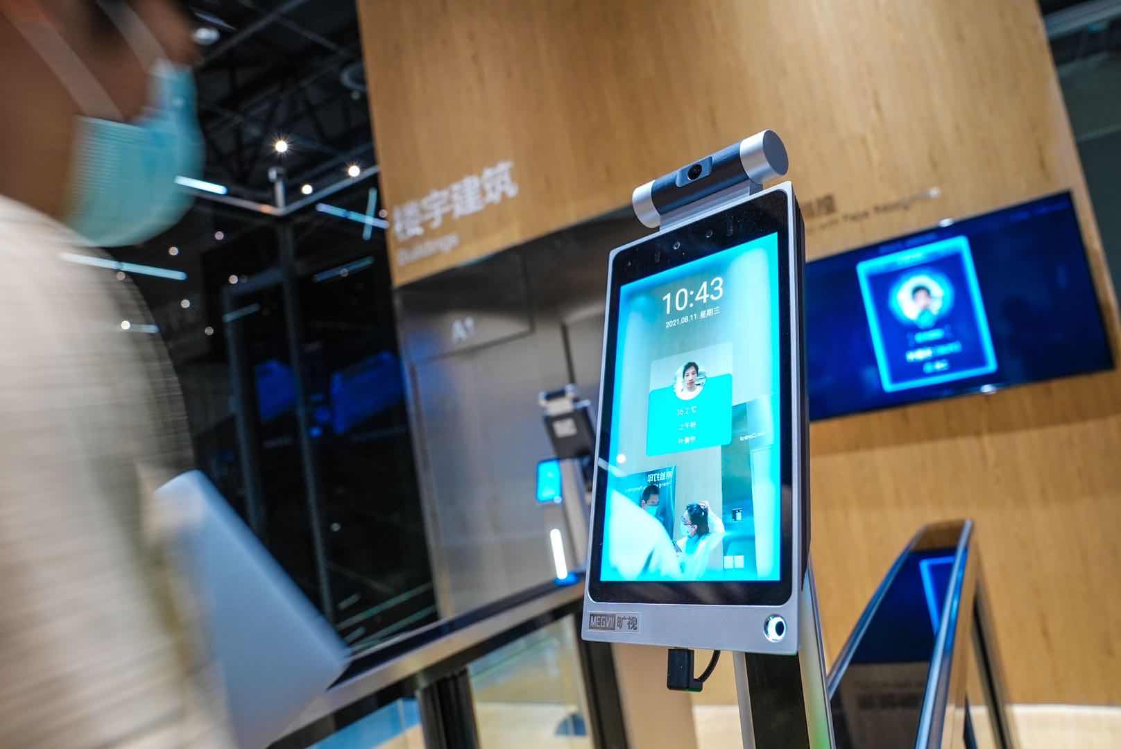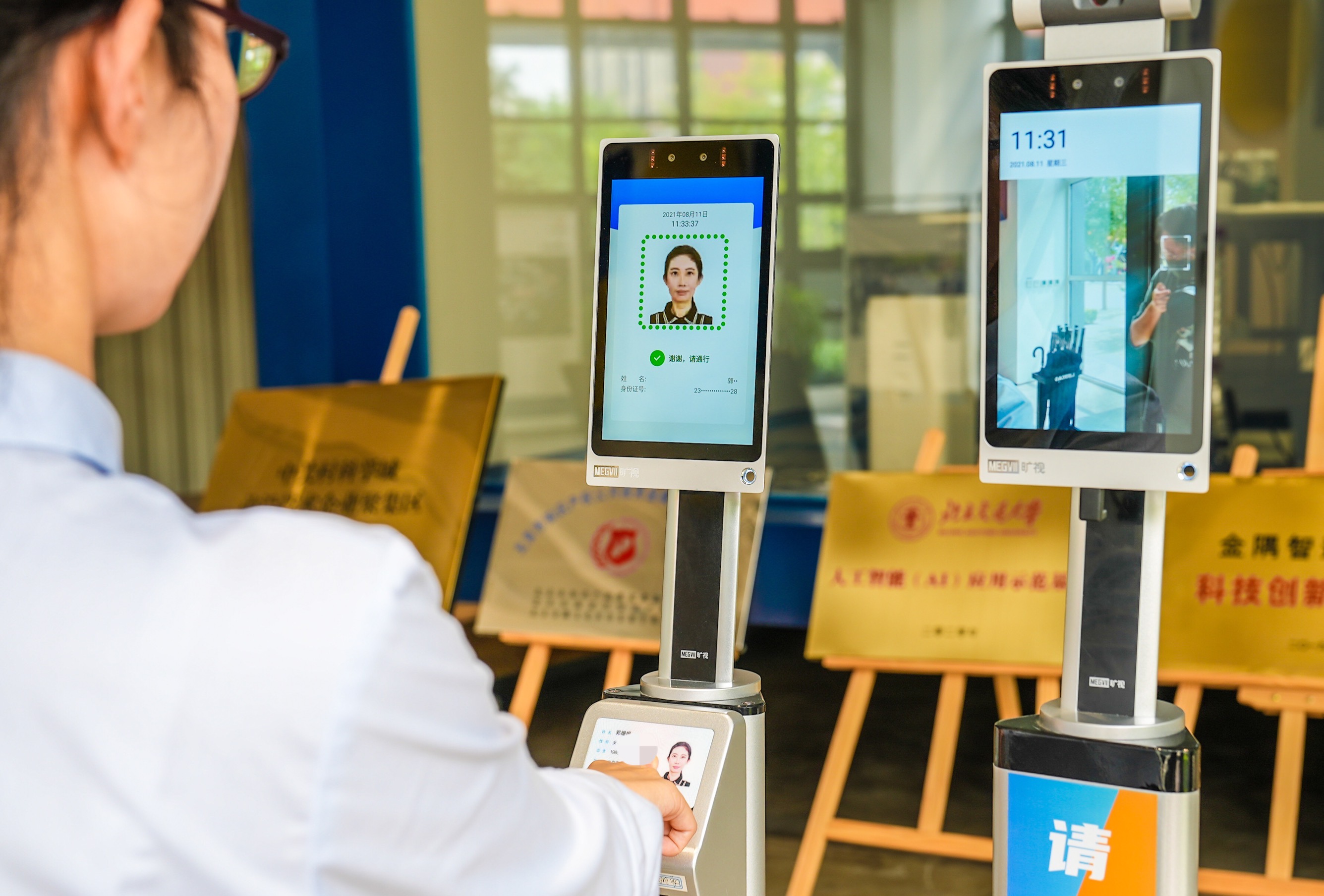 来到行政办公楼,大堂处的智能机器人不仅可以帮忙指路,遇到不戴口罩的访客时还会发出语音提示。在部分写字楼,园区内“独角兽”企业旷视科技研发的测温通道闸机已经投用。在精确测温的同时,科研人员还在测试本人身份、健康宝状态和体温等信息的精确绑定,未来员工只需刷一次身份证,屏幕就可显示体温和健康宝状态信息,当天进出闸机不再需要多次频繁扫码登记。