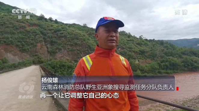 云南省森林消防总队野生亚洲象搜寻监测任务分队分队长 杨翔宇:“象群离我们只有10米到20米的距离,当时所有队员都屏住了呼吸,但是,其实它们对我们是不理不睬的。”