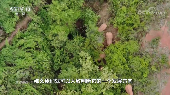 云南省森林消防总队野生亚洲象搜寻监测任务分队分队长 杨翔宇:“一方面沿着象群的脚印、粪便,或者是它们扔下的树枝和落下的食物来寻找象群的位置、方向。另一方面是通过听声辨别,比如说附近有野象的声音,我们就可以大致判断它们的发展方向,通过这两大方面来寻找象群的蛛丝马迹,同时为我们的无人机监测提供有力的支持。”