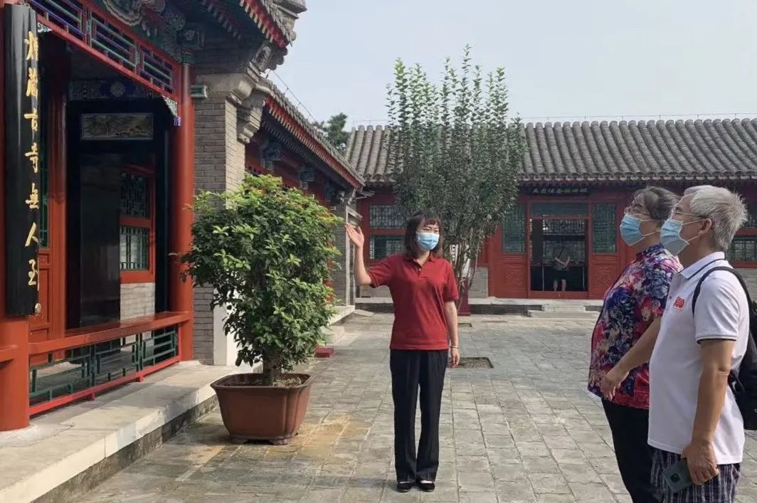 公园防疫志愿者“一步一岗”时刻提醒游客注意防疫要求。刚刚对外开放的红色景点慈悲庵,为落实防控要求均采取室外讲解。