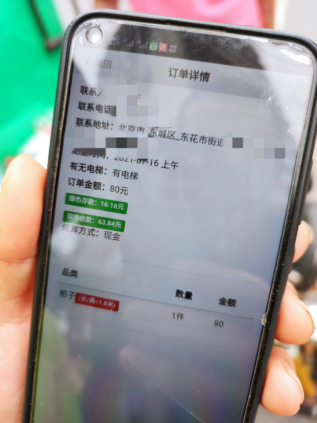 “一个月大概会有七八单大件清运,主要是沙发和床。”孙飞飞是绿猫负责东花市街道忠实里社区的工作人员,虽然是女性,但她平时和同事们接完单,就上门为居民清运沉重的大件垃圾。这当然不是孙飞飞的唯一工作,绿猫作为垃圾分类服务平台,平时还负责上门回收居民家里的“可回收垃圾”。纸箱、饮料瓶、金属、家电,居民们都可以用来换钱。这些钱存入绿猫的绿色存款账户,既可以提现,也可以换购日用品,还可以抵扣大件垃圾清运费。