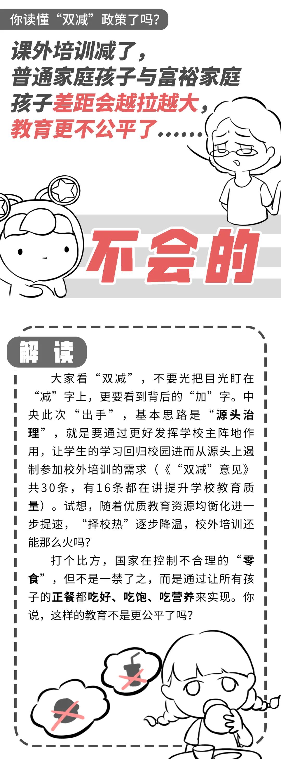 日前,中共中央办公厅、国务院办公厅印发了《关于进一步减轻义务教育阶段学生作业负担和校外培训负担的意见》,简称“双减”政策。