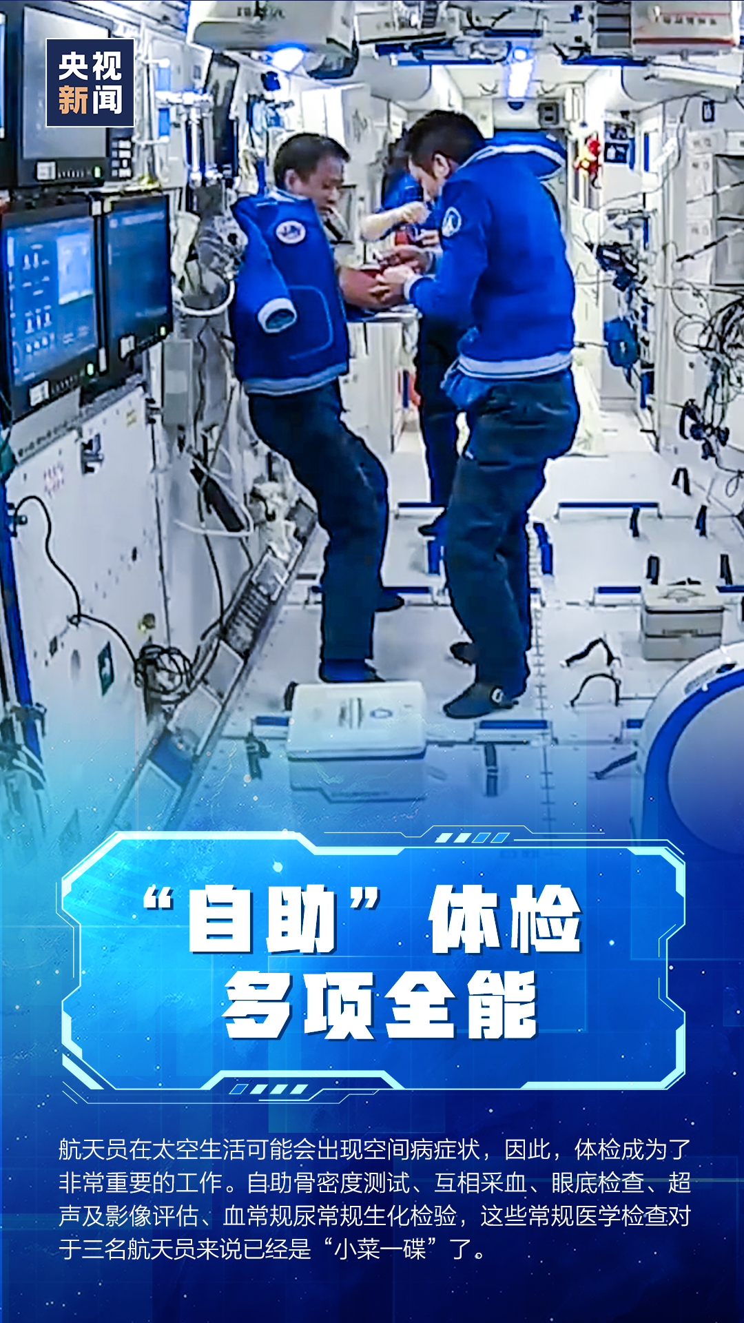 8月20日,神舟十二号航天员乘组圆满完成第二次出舱任务。截至目前,聂海胜、刘伯明、汤洪波“出差三人组”在轨工作生活已满2个月。他们不仅能驾驭高难度舱外作业和舱内实验,还能互相采血、做超声、搞装修,工作之余喝茶健身样样都拿手。