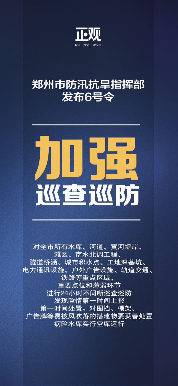 根据研判,本轮强降雨落区预计与前期暴雨落区高度重叠,防汛抢险形势异常严峻。郑州刚刚遭受7·20特大极端暴雨灾害,常庄水库、五星水库、郭家咀水库出现重大险情,其他多座中小水库及河道堤防也出现不同程度险情和水毁;全市道路、桥涵等基础设施受损严重,西部山丘区因前期降雨,土壤含水量较高,发生山洪灾害、地质灾害的可能性较大;目前郑州全市恢复重建工作仍在持续,各类水利工程和基础设施还很脆弱,防汛压力较大。按照《郑州市防汛应急预案》有关规定,经研究,我市防指已经决定于8月21日12时启动防汛Ⅱ级应急响应,下午19时发布郑州市防汛抗旱指挥部第6号令。