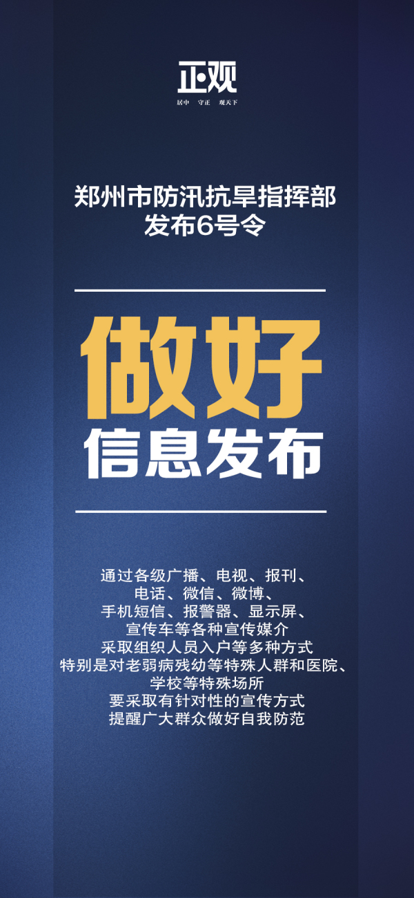 市民朋友们,我们刚刚经历了“7·20”特大暴雨,又经历着新冠肺炎疫情阻击战,当前又要面对眼前这场“防汛战”。谢谢你们一直以来的坚持和坚守。你们的生命和财产安全,是我们最大的目标。