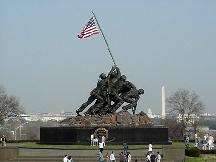 在不少美国人看来,“美国国旗插上硫磺岛”这张照片反映了二战期间美国军人浴血奋战的“英雄形象”,塑造了美国人的二战记忆。这张照片见报后还引起了巨大轰动,时任美国总统杜鲁门特别下令表彰这六名美国军人,其中三位幸存者后来还受到了杜鲁门的接见。杜鲁门还称赞他们是“美国英雄”。1954年,以这张照片为原形的巨大青铜雕像在与华盛顿特区隔江相望的弗吉尼亚州阿灵顿市罗斯林镇建成。