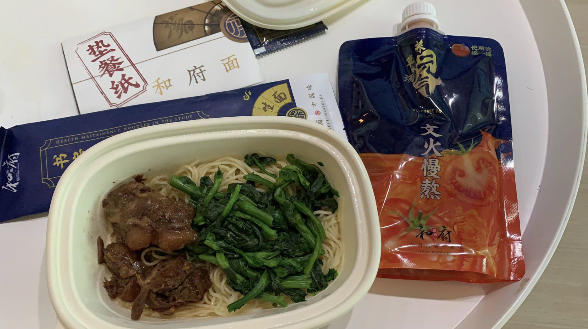 点一份捞面包装物摆满一桌