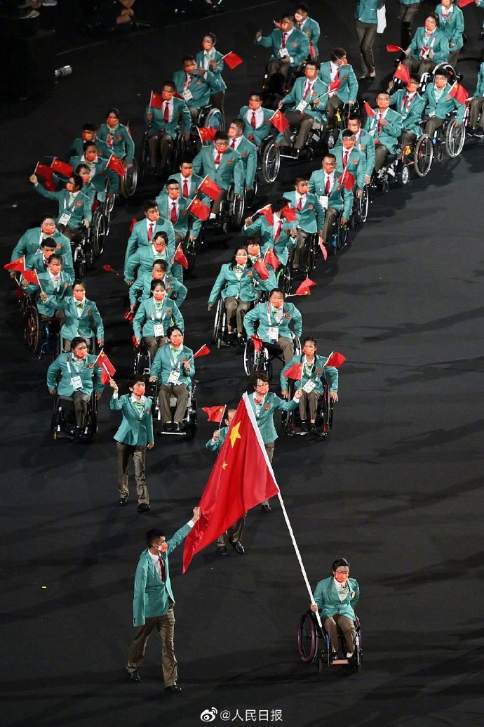 8月24日晚,2020东京残奥会开幕式在东京新国立竞技场举行。刚刚,中国体育代表团在第98位入场。女子轮椅射箭运动员周佳敏、男子肢残田径运动员王浩担任中国体育代表团的旗手,带领其他运动员进入场内。值得一提的是,本次开幕式上,无论运动员们是否能够参加开幕式,他们的名字都将出现在看台的环形屏幕上。这也体现了残奥会以运动员为核心的理念。