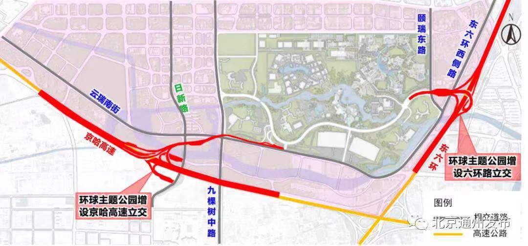 六环路立交节点工程位于东六环路与萧太后河南街相交处,为六环路连接环球度假区的进出口,主要承担六环路进出园区的交通转换功能。目前,市民驾车可从东六环路内环方向进出环球度假区(从北进、向南出)。外环方向(从南进、向北出)已纳入东六环入地工程同步建设,目前正在紧张施工中,预计明年完工。