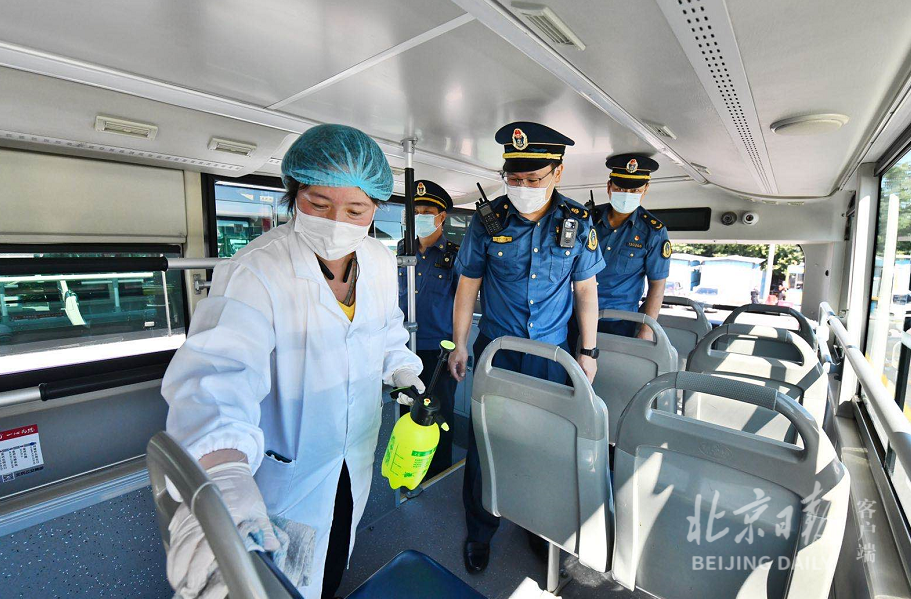 为做好地面公交防疫工作,近期,北京市交通运输综合执法总队围绕六里桥、西站北广场、东直门等公交枢纽,以及大望路、八王坟、天通苑北等重点区域开展地面公交行业疫情防控落实情况执法检查,对场站内部安全、物业管理、车辆消毒、员工培训、乘客测温点进行全面排查。