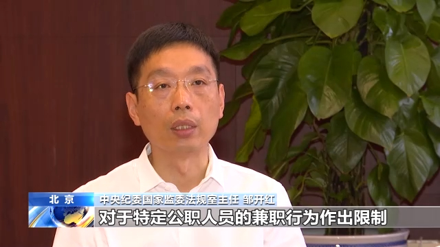 中央纪委国家监委法规室主任 邹开红:审判机关、检察机关的工作人员都是监察对象,而且监察机关与审判机关、检察机关在工作中互相配合、互相制约。兼任这些机关的职务,可能会与监察职责发生冲突,影响监察官公正履职。对特定公职人员的兼职行为作出限制,目的是防止利益冲突、确保公正履职,(也)是有关法律的通行做法。