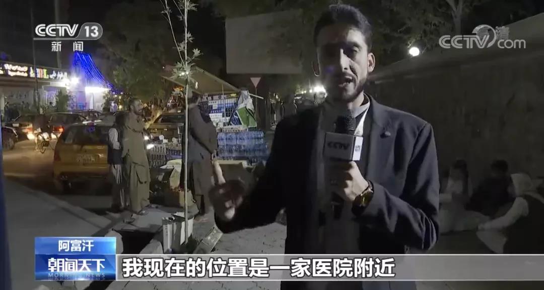 △ 当地时间8月26日傍晚,喀布尔机场发生爆炸,总台报道员奥贝德第一时间赶赴机场以及医院附近进行采访。
