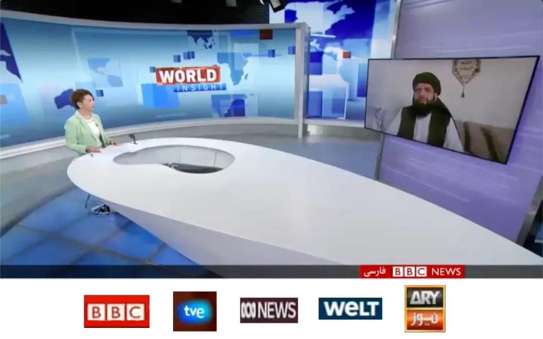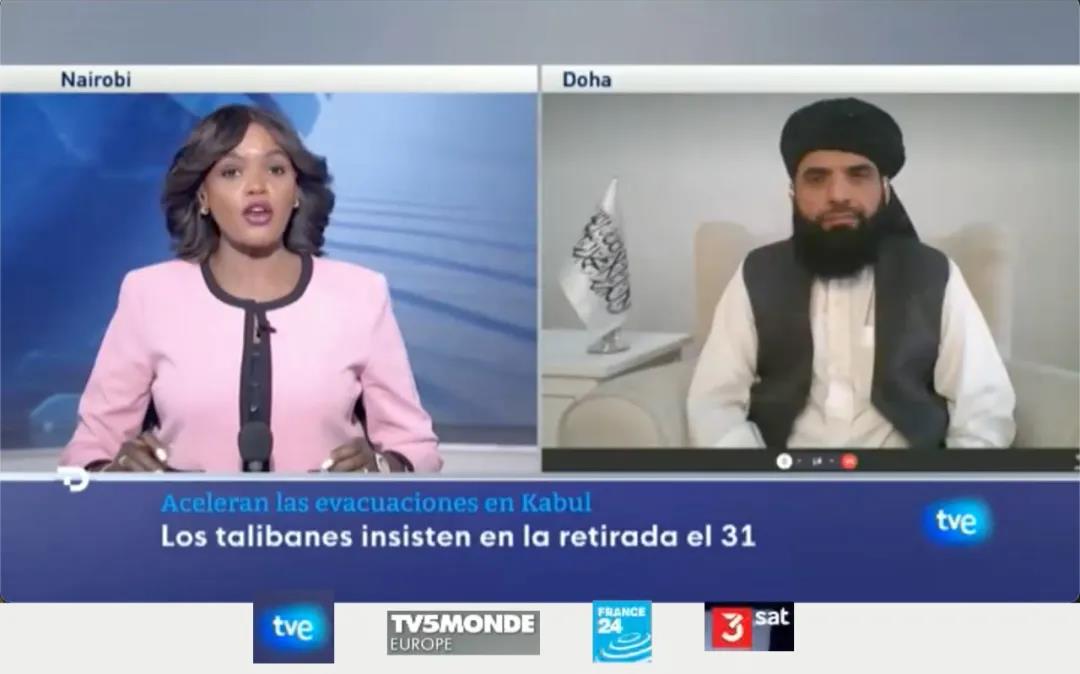 8月19日、20日和23日,CGTN主持人田薇、吉米·欧文、碧翠丝·马歇尔三次独家专访塔利班发言人苏海尔·沙欣。总台成为第一个独家专访沙欣的中国媒体。三次专访被全球至少72个国家和地区的492家电视台/频道以及网络新媒体平台采用。