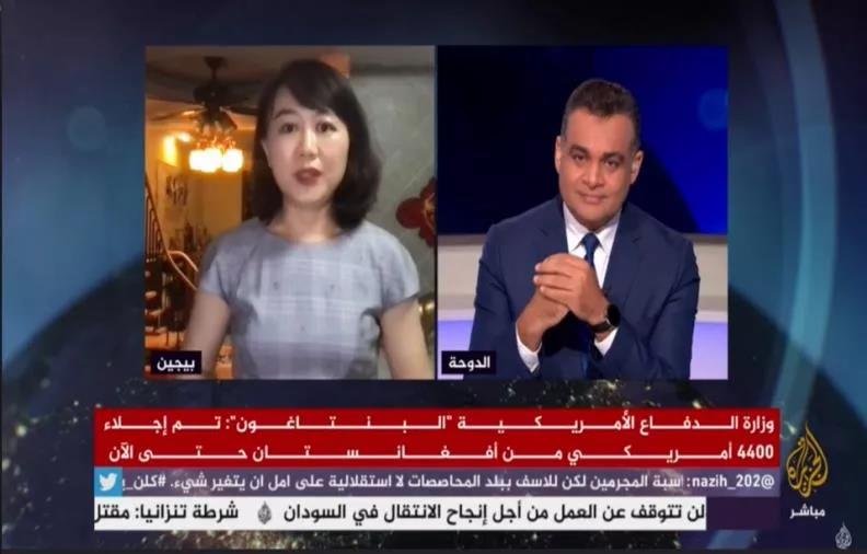 △ 8月26日凌晨,卡塔尔半岛电视台再次连线叶欣华。连线中她充分输出观点,中方对阿富汗的政策是一贯和明确的。