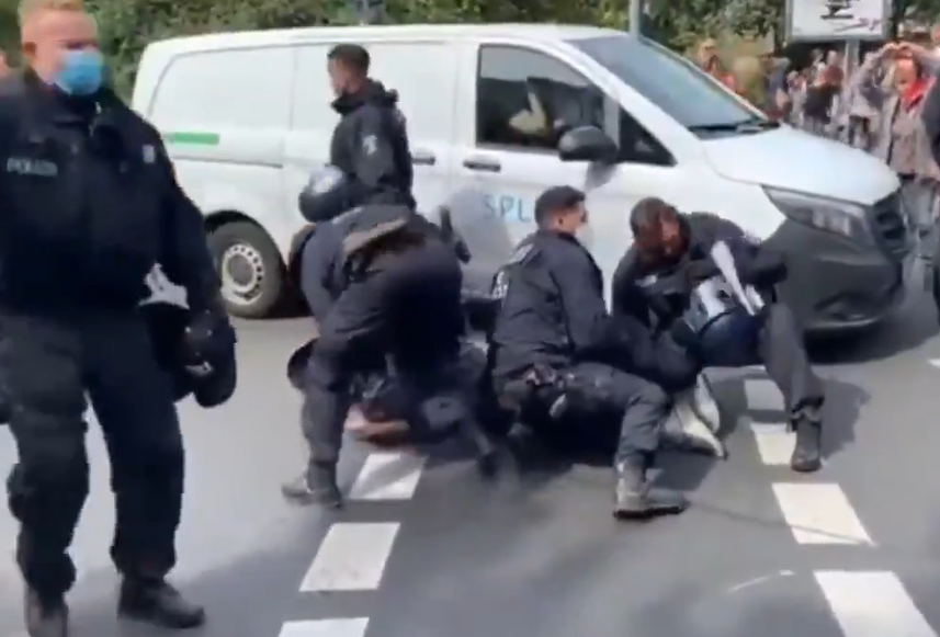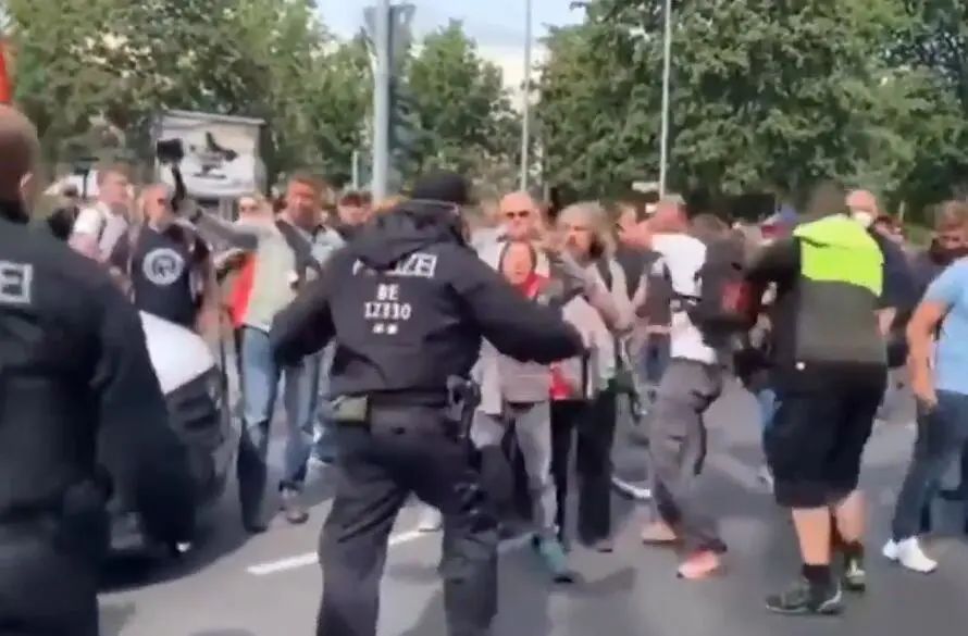 德国柏林街头当天同样出现了示威活动。路透社称,上千人参加游行活动,高呼抗议口号,挥舞横幅,反对新冠疫情限制,报道称,警方与抗议者发生了冲突。视频显示,有示威者被警方摁倒在地,警方使用喷雾试图控制示威人群。