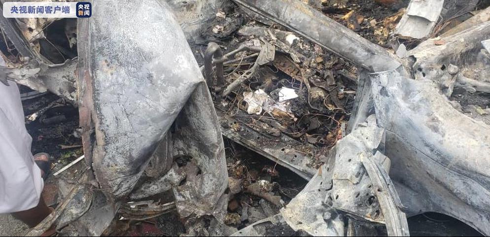 △左侧白色车辆为美军空袭轰炸的车辆残骸