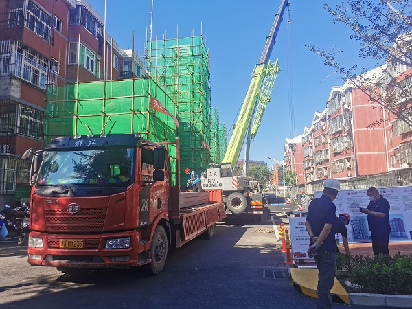 据介绍,根据房龄、建筑结构等不同情况,在确保施工安全和电梯安全使用的前提下,目前加装电梯的施工模式主要分为半层入户和加装廊桥平层入户。三合庄园小区加装电梯采用的是加装廊桥平层入户模式,即在每家住户加装电梯的两侧扩建一个廊桥,廊桥与电梯之间实现无障碍入户,既保证了安全和美观,又最大程度地减少阳光的遮挡。