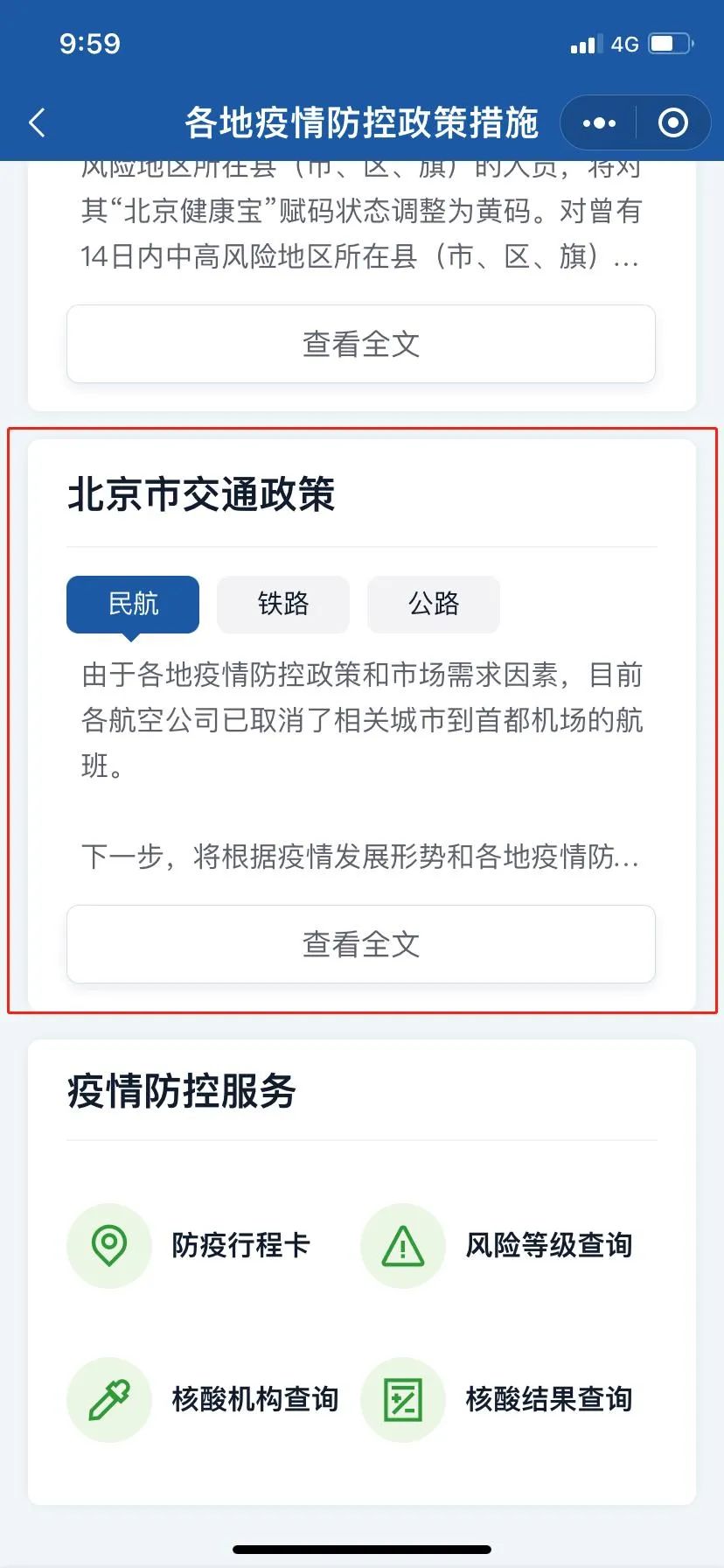 点击“查看全文”,可以看到防控政策的全部内容。