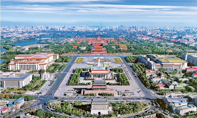 习近平总书记考察北京时指出:“历史文化是城市的灵魂,要像爱惜自己的生命一样保护好城市历史文化遗产。”北端钟鼓楼、南端永定门,全长7.8公里的北京中轴线是中国现存规模最恢宏、保存最完整的传统都城中轴线,承载着丰富的历史文化内涵。中轴线申遗保护工作启动以来,北京全市一盘棋,通过有效保护为申遗创造条件。图为北京中轴线航拍图。 马文晓/摄